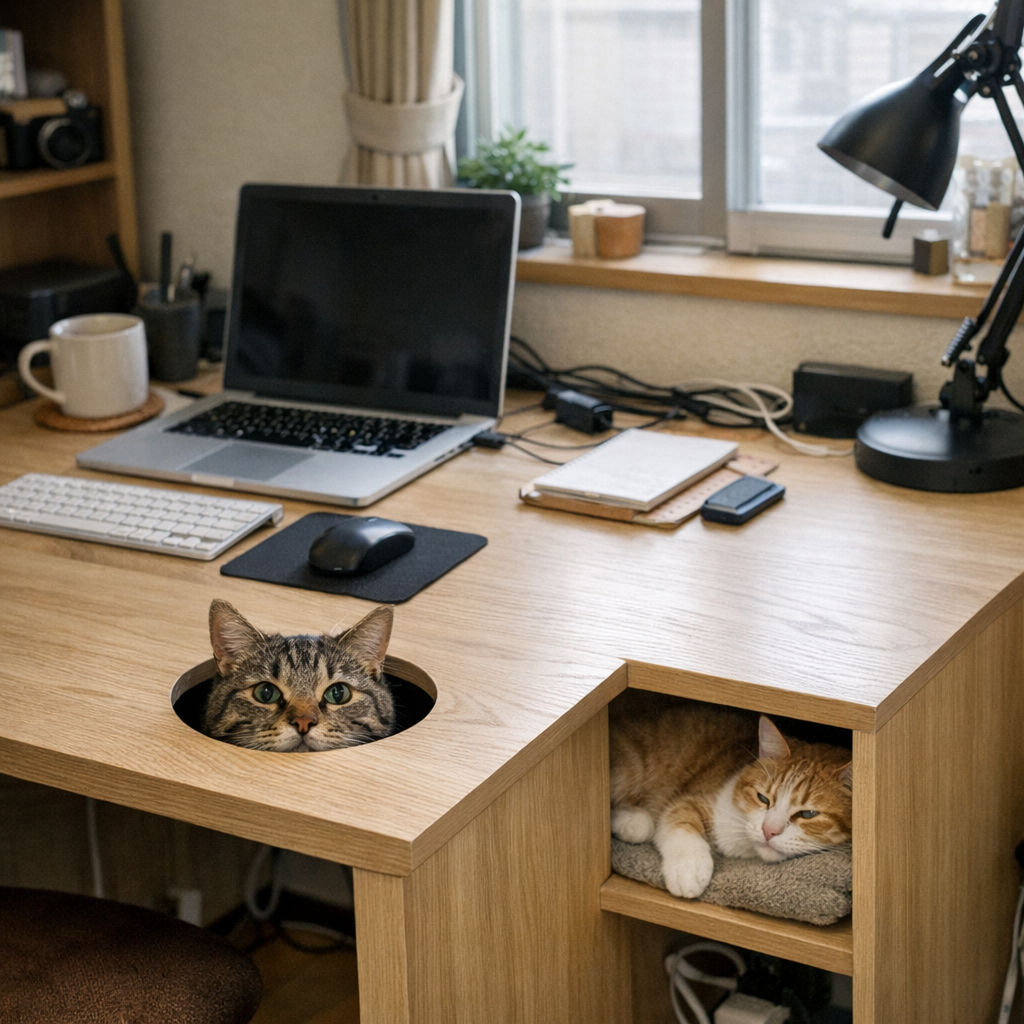 日本家居品牌 Bibilab 推出一款专为“居家办公+养猫”场景设计的书桌,把猫窝、通道和互动孔洞直接嵌进桌体里,试图解决猫占键盘、堵屏幕、霸占腿部空间的日常难题。它看上去像个可爱小发明,但背后其实折射出一个越来越明确的消费趋势:家具正在从“给人用”变成“给家庭关系用”,而宠物,正是这轮设计变革里最强势的用户之一。
