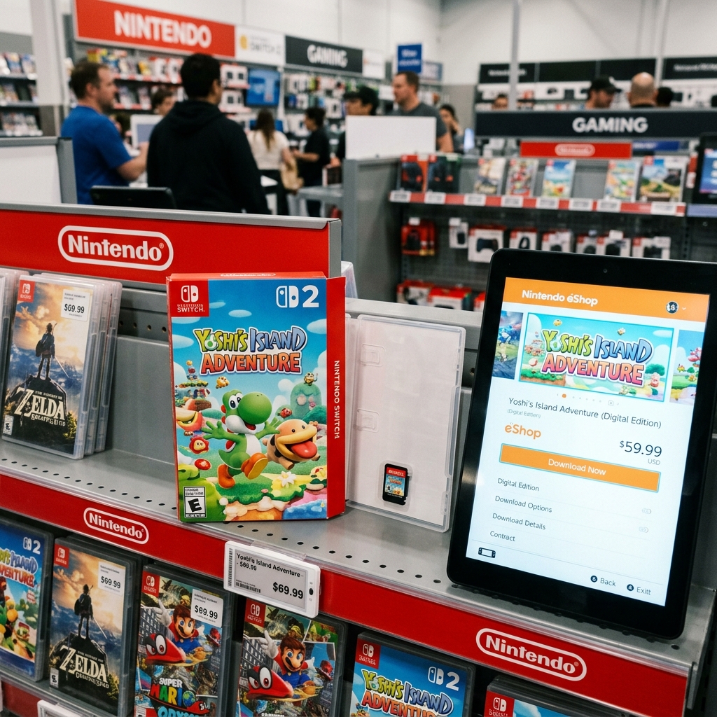 任天堂宣布从 5 月起提高部分 Switch 2 实体版游戏售价,首个案例是《Yoshi and the Mysterious Book》:数字版 60 美元,实体版 70 美元。表面上这是把制造、物流成本转嫁给玩家,实际上更像是任天堂在数字分发时代做出的一次明确站队——实体游戏不会消失,但它正从“默认选择”变成一种要额外付费的偏好。